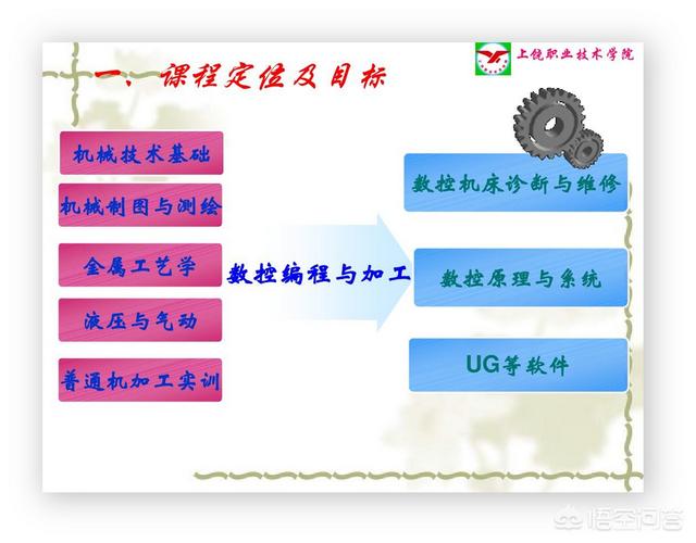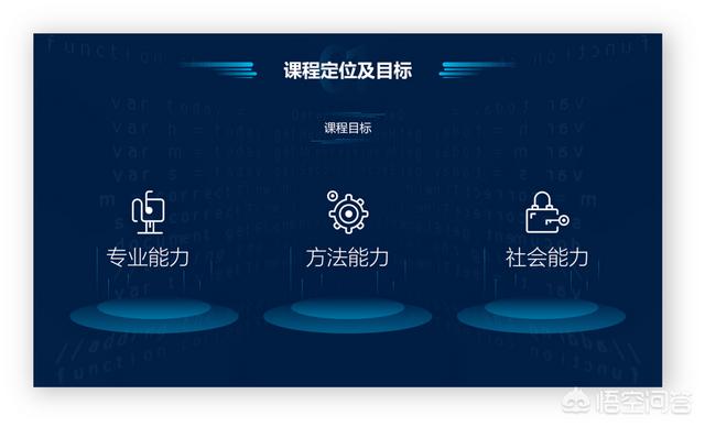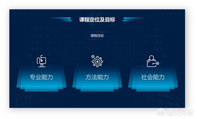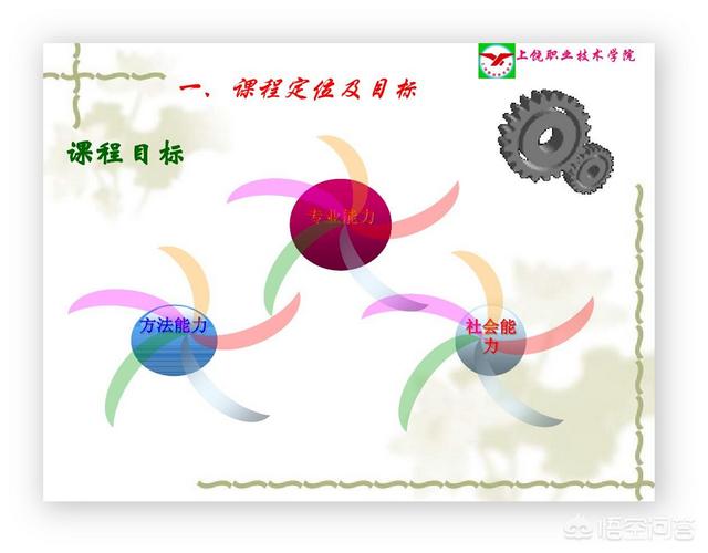 关于课程定位及目标,使用形状突出文字是个不错的思路,但是在颜色上的使用有点欠缺。