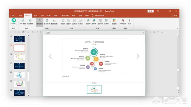 最后,如果实在没有想法了,那就打开【KOPPT】插件,找一个6段内容的逻辑图表。
