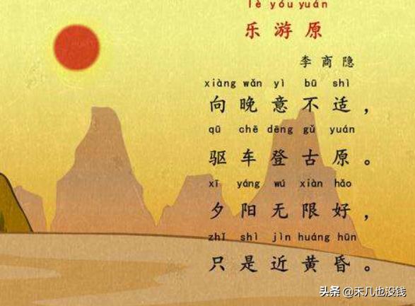 此诗赞美黄昏前的原野风光,表达自己的感受。前两句点出登原游览的原因:由于黄昏日暮心情不适,便驱车登上古原;后两句极力赞叹晚景之美:在夕阳余晖照耀下,涂抹上一层金色的世界。后两句诗历来脍炙人口,其意蕴非常丰富,具有极高的美学价值和思想价值。全诗语言明白如话,毫无雕饰,节奏明快,感喟深沉,富于哲理。