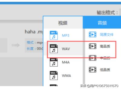 3、然后我们点击右侧的“输出格式”选择需要输出的音频格式,然后点击就可以了。