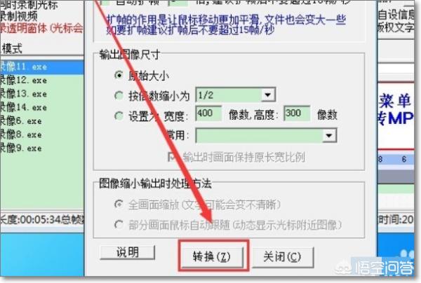 8、这时弹出EXE/LXE转MP4界面,有些视频参数可设置(如比特率、扩帧,图像尺寸等),如果没特别需求,按默认设置,点击转换。