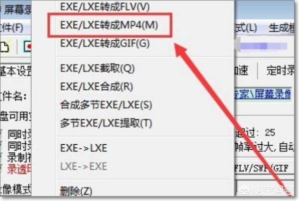 2、右键刚才录制好的视频,在弹出的选项中,我们点击“EXE/LXE转成MP4(M)” 如图。