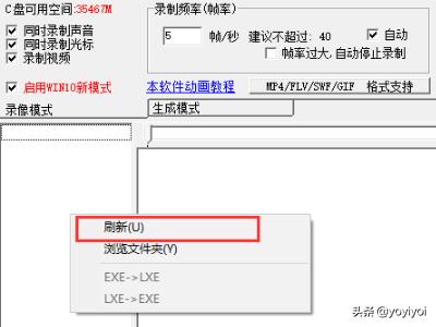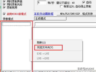 3、接下来需要把exe文件放入到录像文件列表中,在列表框中鼠标右键点击,选择浏览文件夹,其实这个文件夹就临时文件夹。