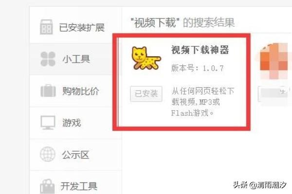 1.最简单的方法就是我们打开网页上的工具拓展,工具拓展在浏览器标签上的最右侧,我们点击进入,在拓展中心里面,我们会看到一款视频下载插件,类似这样的插件有很多,我们随便选择一款进行下载。
