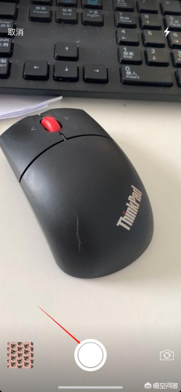 2、在相机屏幕上,选中想要制作背景的图片,点击屏幕下的白色圆圈拍照选取。