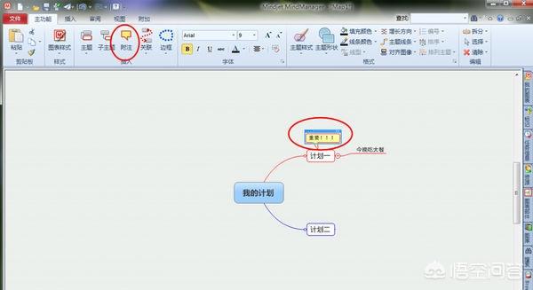 5、每一个主题还可以对其添加附注,软件左上角可以单击鼠标左键进行添加,您也可以使用快捷键添加 ctrl + shift + 回车