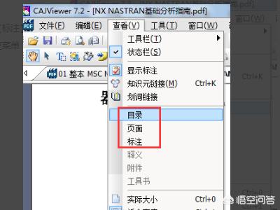 3、显示目录、页面、标注,单击【目录】会显示目录、单击【标注】会显示书签,可以按照需要显示相应菜单。
