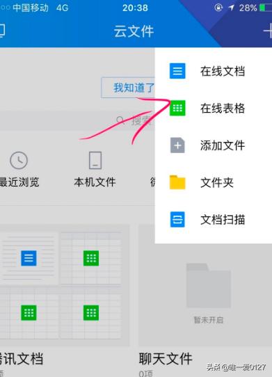 4,登录进来后我们发现跟QQ版的差不多一样、我们点击中间的云文件、然后在右上角点击加号?、选择在线表格。