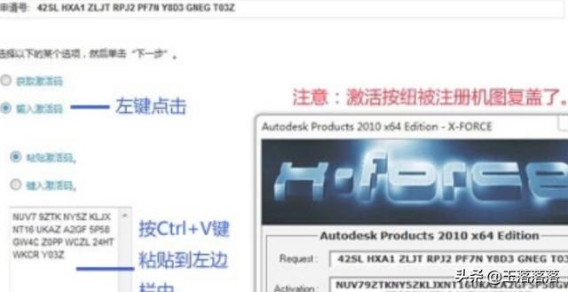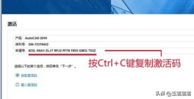 7、回到Auto CAD 2010激活窗口,点击:插入激活码,按 Ctrl+V 键把激活码粘贴到左下方的方框中,再点击:激活;