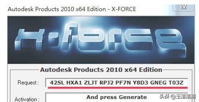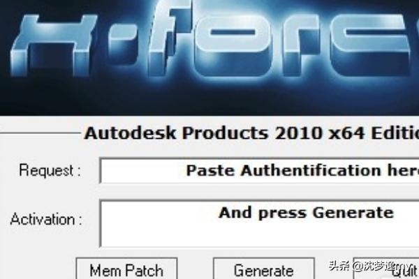 3、复制申请号,第一步点击软的"MEM PATCH",第二步点击“GENERATE"。然后复制得到的序列号,激活CAD2010。