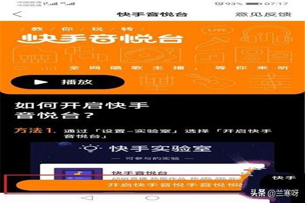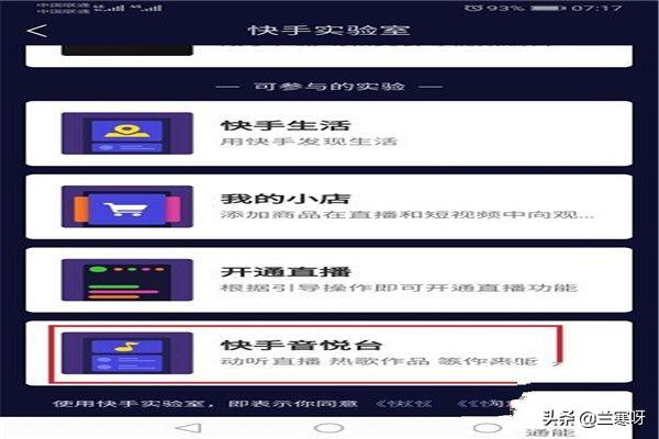 第二步点击设置之后,选择实验室->快手音悦台,如下图所示: