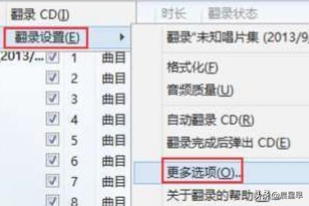 3、单击最右边“>>”,选择“翻录设置”下的“更多选项...”: