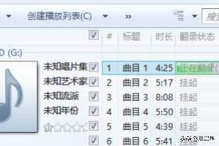 6、开始转换,当前转换CDA的确显示为“正在翻录”: