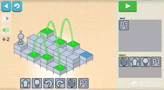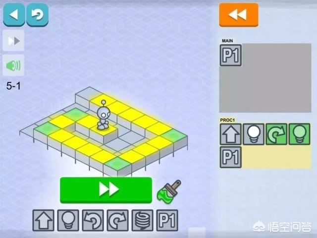 Lightbot是一款启蒙孩子编程思维特别棒的游戏。游戏中玩家对一个小机器人下达指令,目标是将地图内的蓝色砖块全部点亮为黄色。