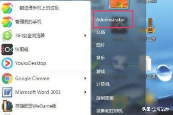 2、找到这个文件夹的位置。点击“开始”然后打开“Administrator "(个人文件夹)里,如图所示。