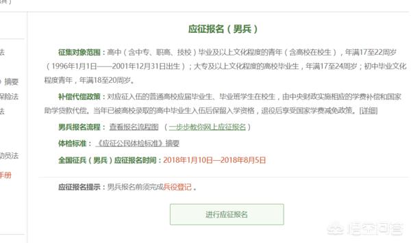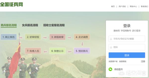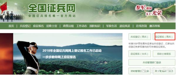 全国征兵网是全国征兵报名唯一官方网站。年满18岁男性青年应参加网上兵役登记;大学生、女青年、已参加兵役登记有参军意向的其他男青年可申请参军报名。