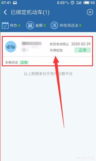 3.之前我们注册的时候就会绑定机动车的信息了,这个时候就会显示,接着点击右上角“+”号。