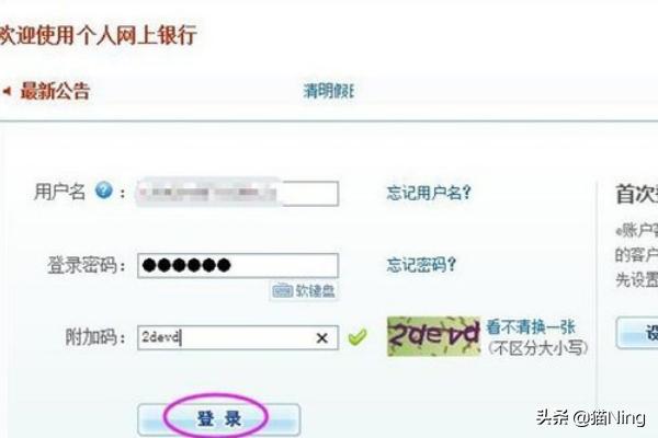 输入身份证号、密码以及验证码,点击“登陆”进入个人网银。