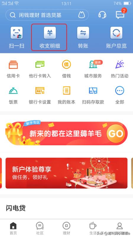 一、手机打开招商银行手机银行进入以后,点击“收支明细”。