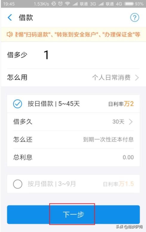 2、进入【蚂蚁借呗】后,可以看到可以借款的额度和利率,请谨慎判断是否在自己可承受的范围;