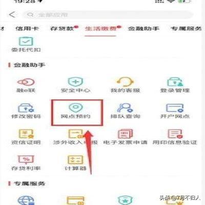 3.更多界面下拉到下面找到金融助手,点击网点预约,如下图所示