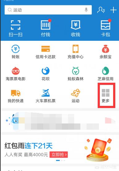 首先:打开你的手机支付宝,进入之后,点击一下更多选项。