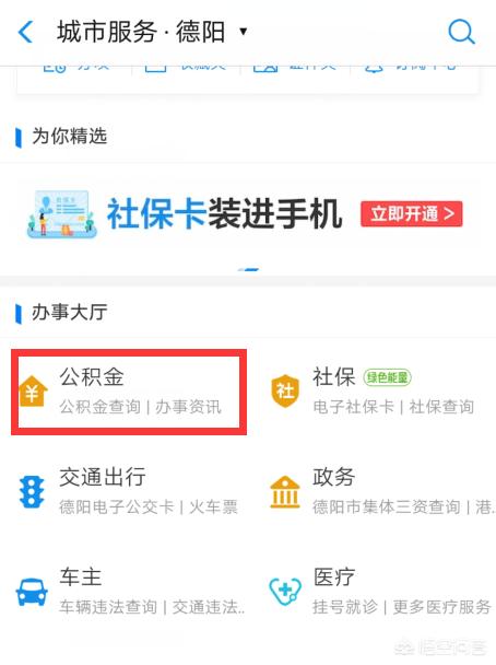 在新界面里,找到“公积金”选项,点击它进入其中。